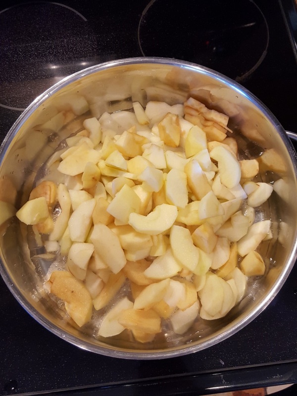 6. Keep stirring the apples making sure they do not burn.  As the apples start to cook keep stirring and adding water to the pan so they do not burn.