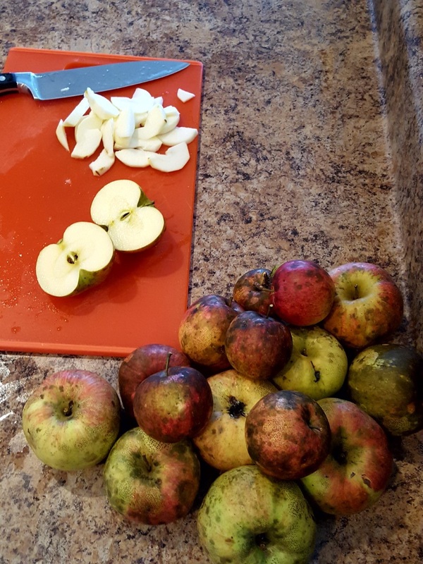 2. Cut and remove the inner part of the apple, seeds, and stem.