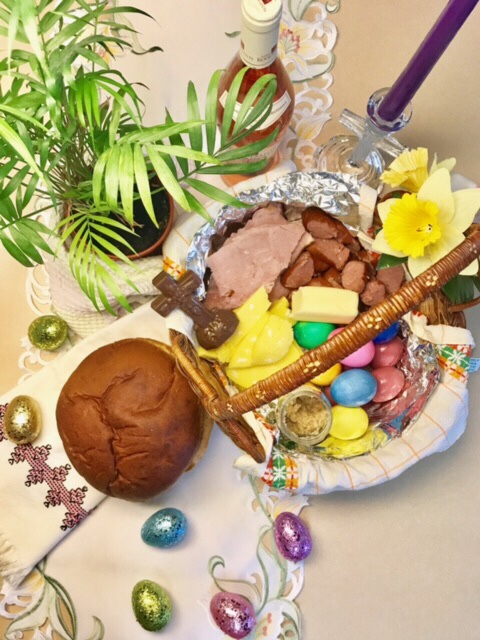 Before Easter mass on Sunday, my family gathers for a small breakfast that includes the Blessed food.